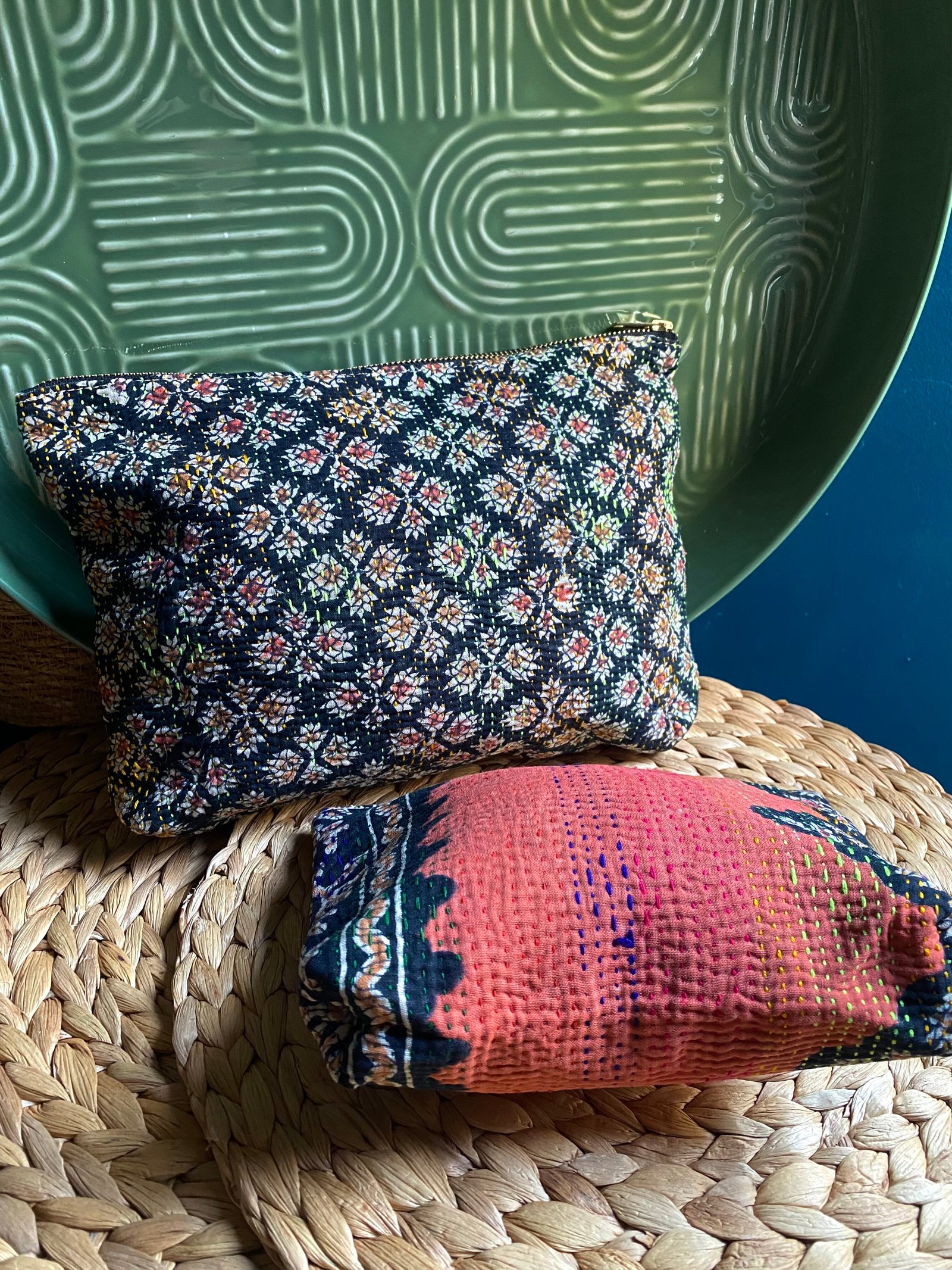 Ce set de trousses réalisé à partir des chutes des kanthas qui servent à la confection des vestes de la collection, vous rappelle que le monde est beau !