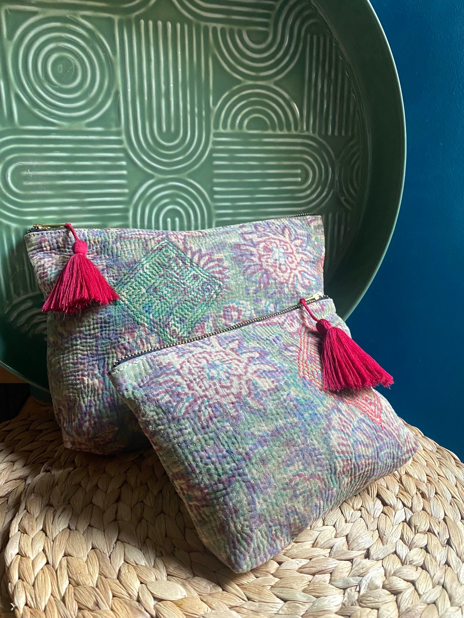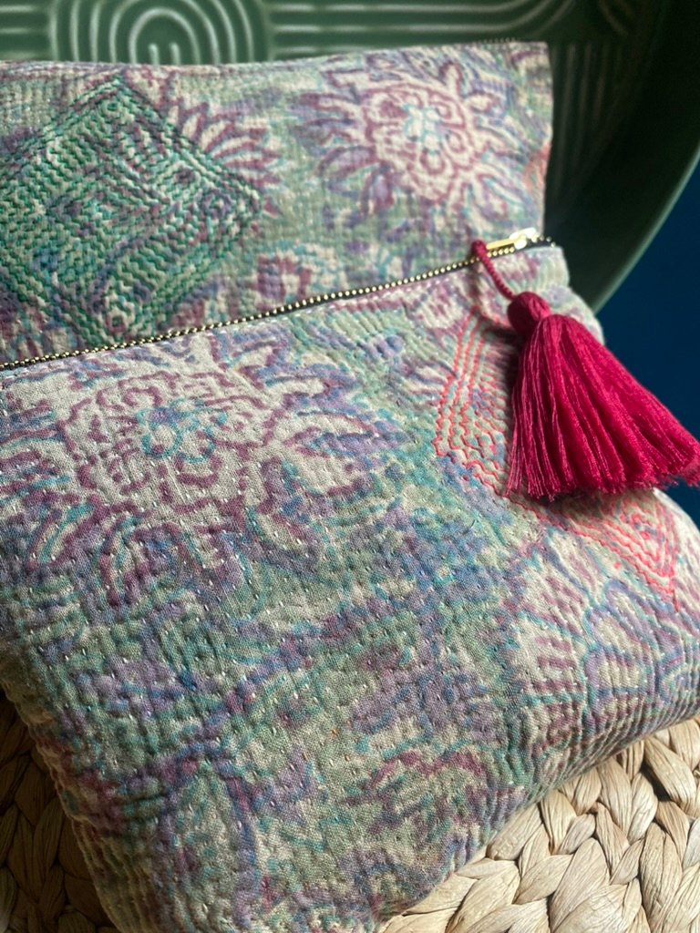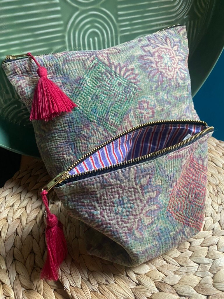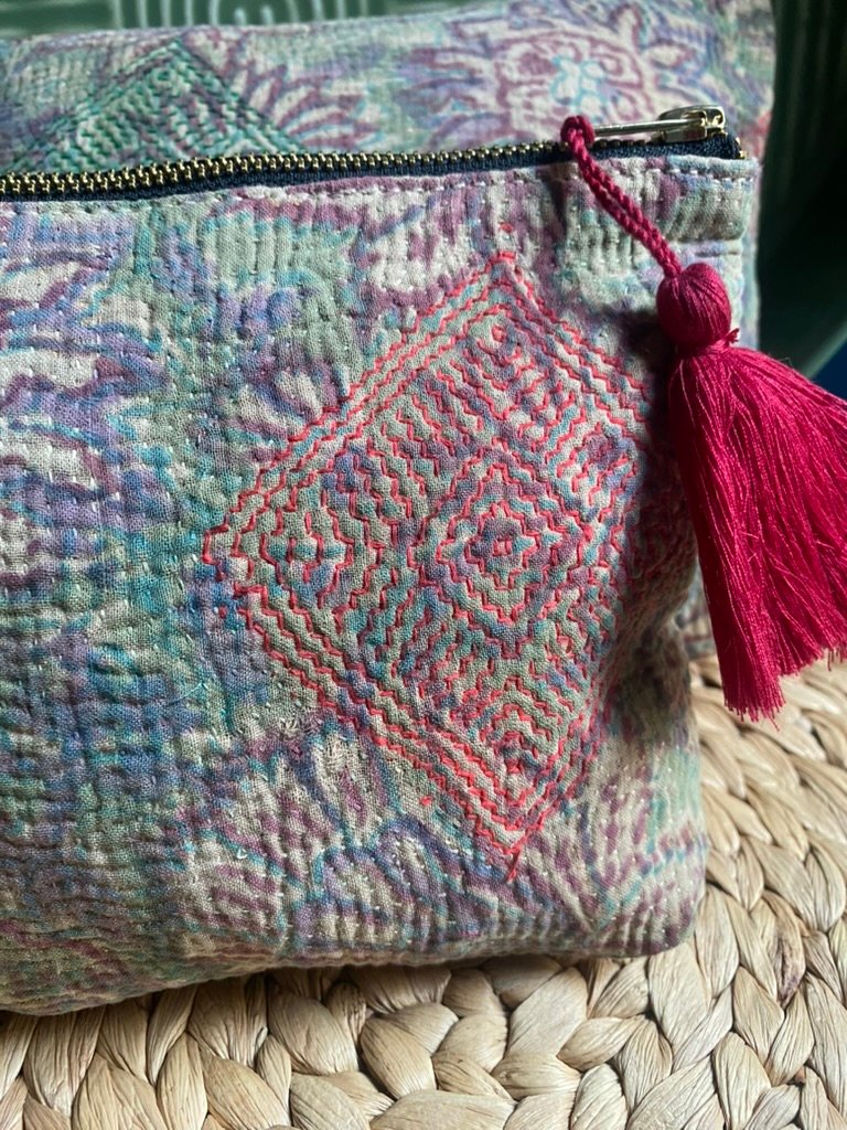 Ce set de trousses réalisé à partir des chutes des kanthas qui servent à la confection des vestes de la collection, vous rappelle que le monde est beau !