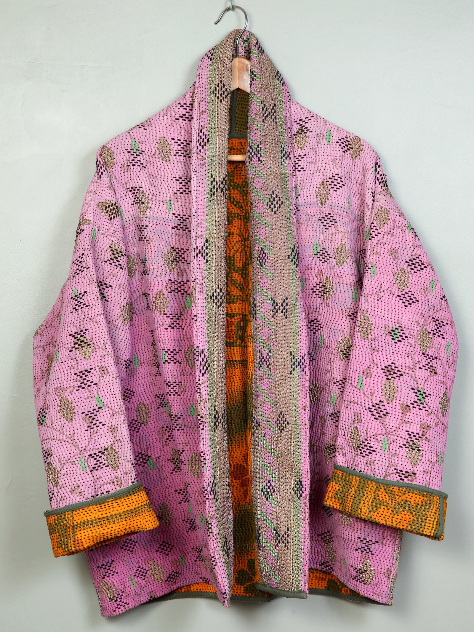 Les vestes de notre collection sont toutes des pièces unique créées à partir de tissus anciens appelés kanthas qui portent les empreintes du temps et des mains qui les ont façonné. De fait elle peuvent présenter quelques irrégularités sans pour autant en altérer la solidité. Chez Kahani Paris, nous considérons que ces irrégularités font l’âme et la beauté de nos produits.