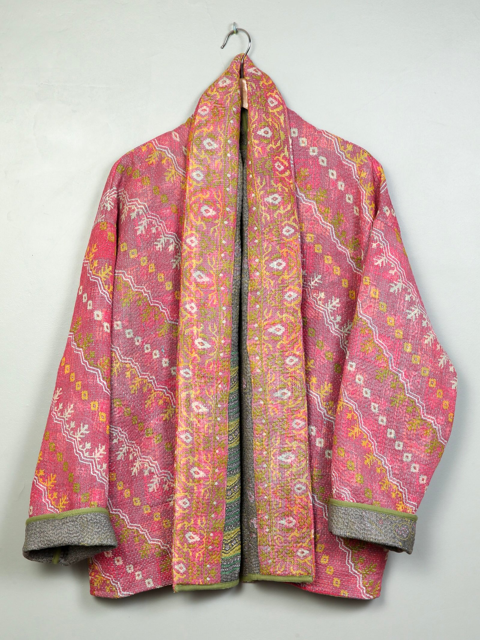Les vestes de notre collection sont toutes des pièces unique créées à partir de tissus anciens appelés kanthas qui portent les empreintes du temps et des mains qui les ont façonné. De fait elle peuvent présenter quelques irrégularités sans pour autant en altérer la solidité. Chez Kahani Paris, nous considérons que ces irrégularités font l’âme et la beauté de nos produits.