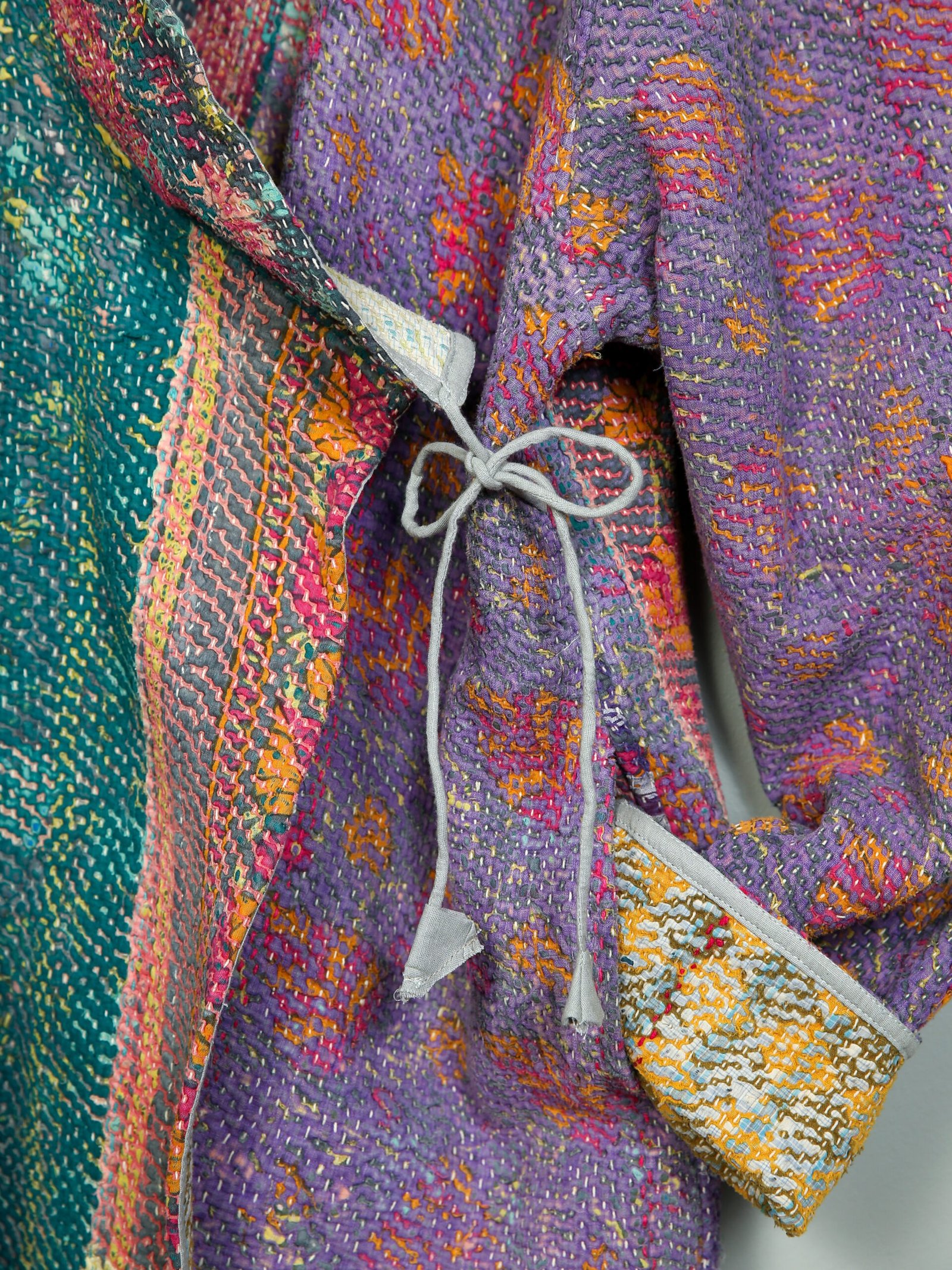 Les vestes de notre collection sont toutes des pièces unique créées à partir de tissus anciens appelés kanthas qui portent les empreintes du temps et des mains qui les ont façonné. De fait elle peuvent présenter quelques irrégularités sans pour autant en altérer la solidité. Chez Kahani Paris, nous considérons que ces irrégularités font l’âme et la beauté de nos produits.