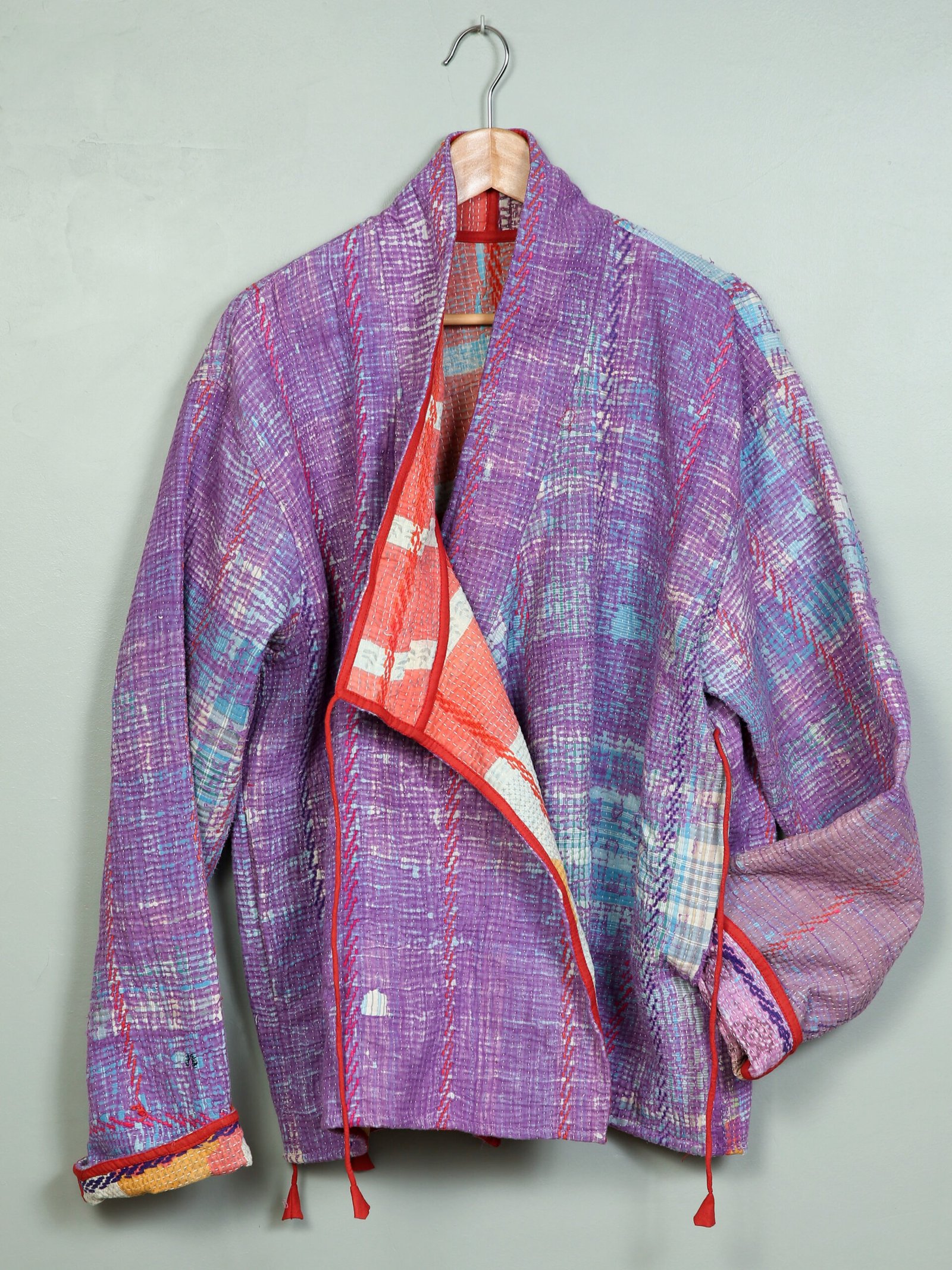 Les vestes de notre collection sont toutes des pièces unique créées à partir de tissus anciens appelés kanthas qui portent les empreintes du temps et des mains qui les ont façonné. De fait elle peuvent présenter quelques irrégularités sans pour autant en altérer la solidité. Chez Kahani Paris, nous considérons que ces irrégularités font l’âme et la beauté de nos produits.