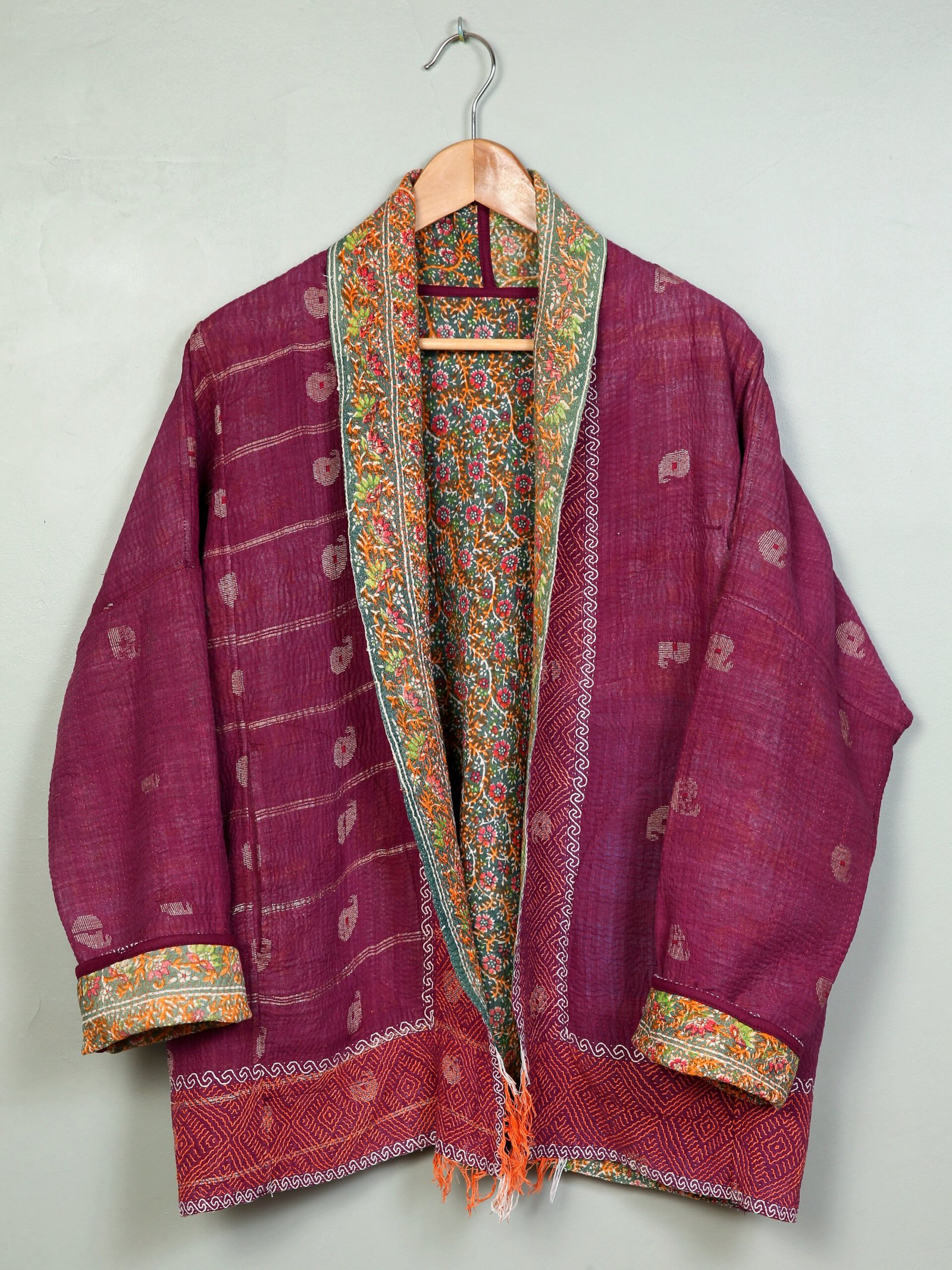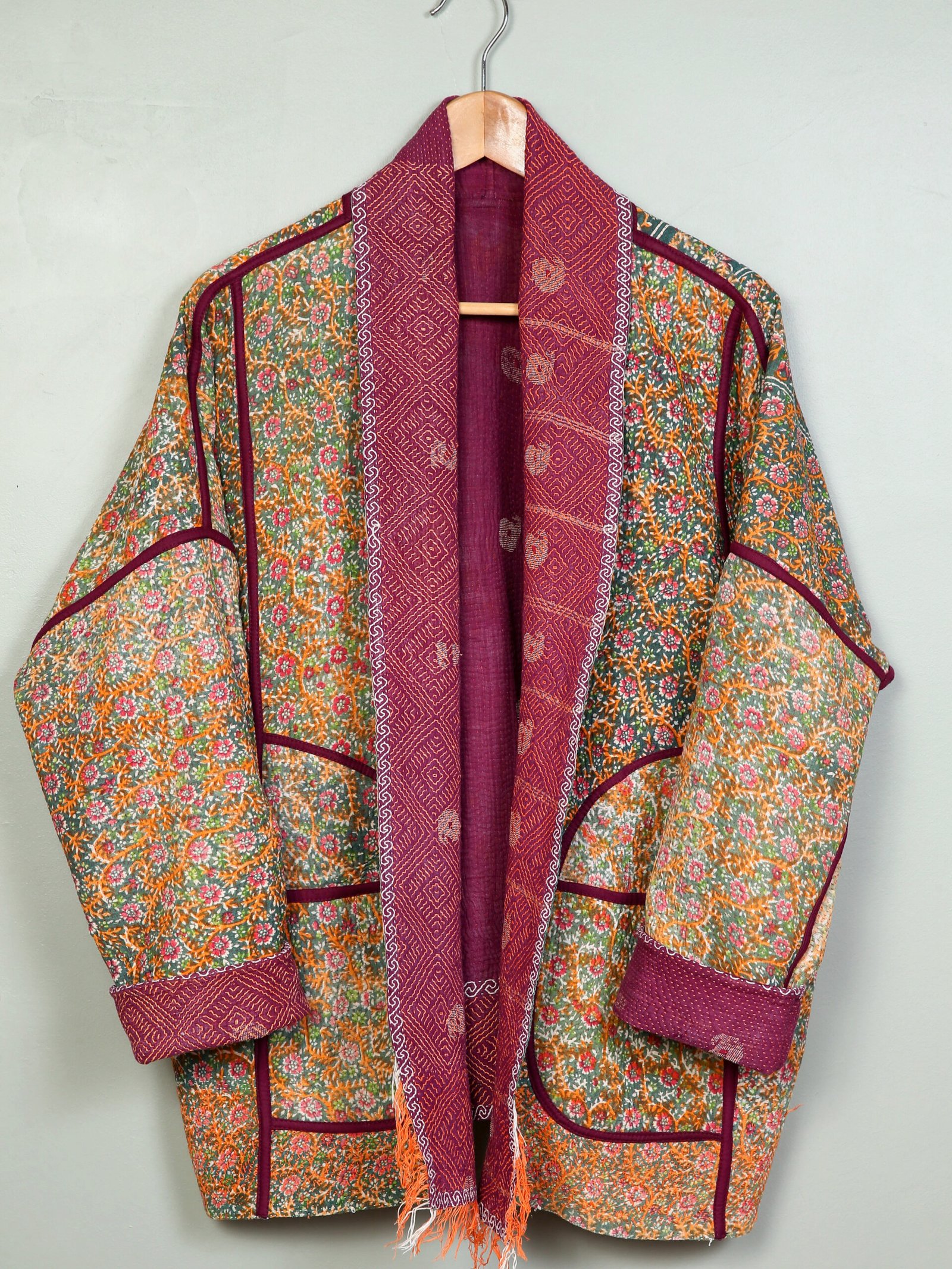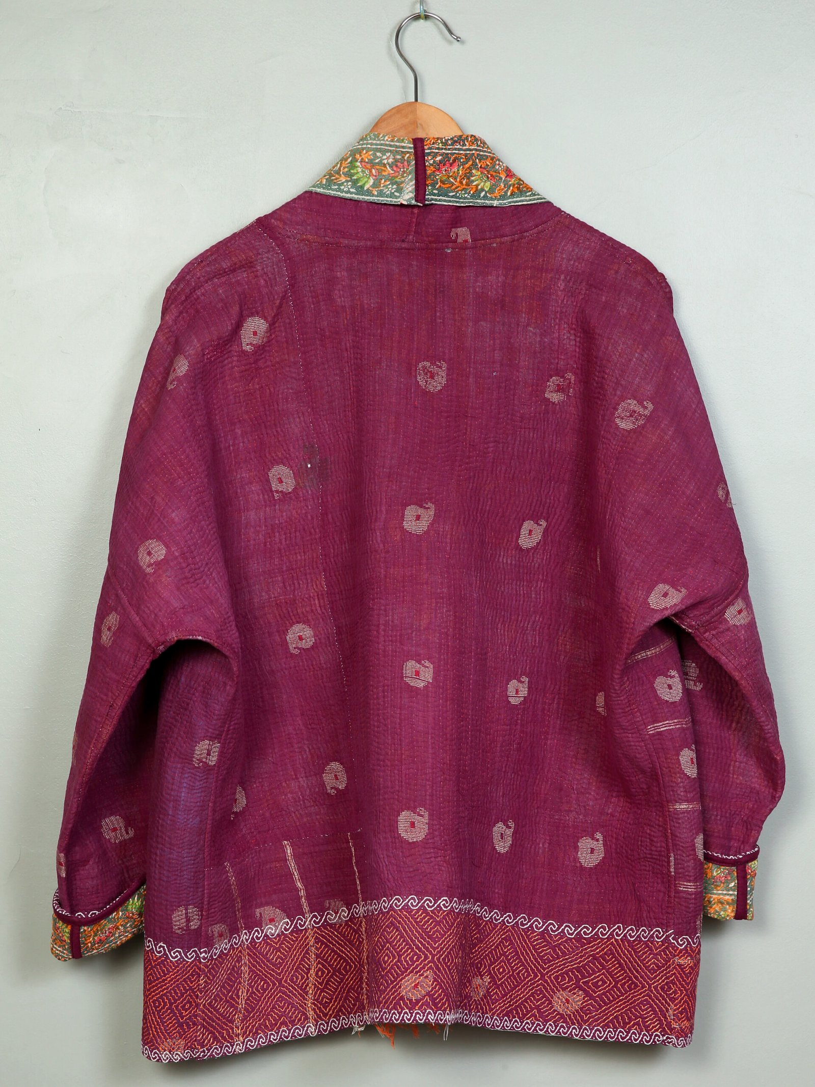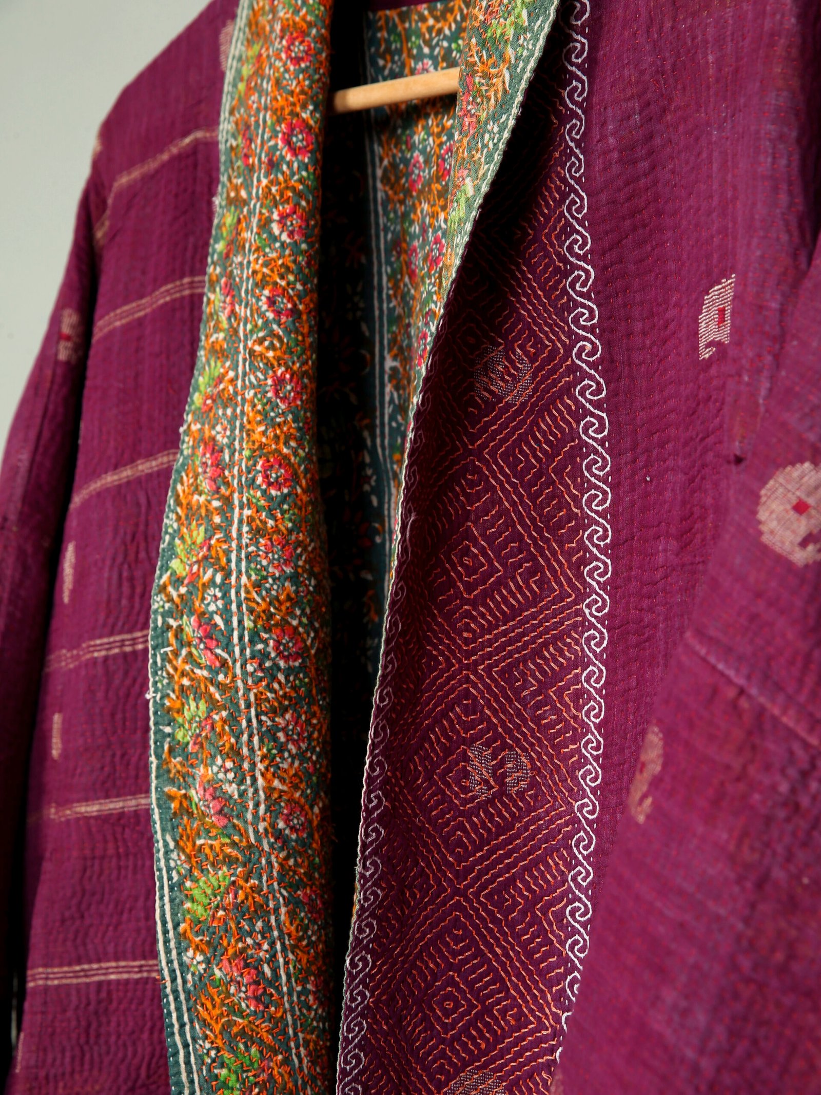 Les vestes de notre collection sont toutes des pièces unique créées à partir de tissus anciens appelés kanthas qui portent les empreintes du temps et des mains qui les ont façonné. De fait elle peuvent présenter quelques irrégularités sans pour autant en altérer la solidité. Chez Kahani Paris, nous considérons que ces irrégularités font l’âme et la beauté de nos produits.