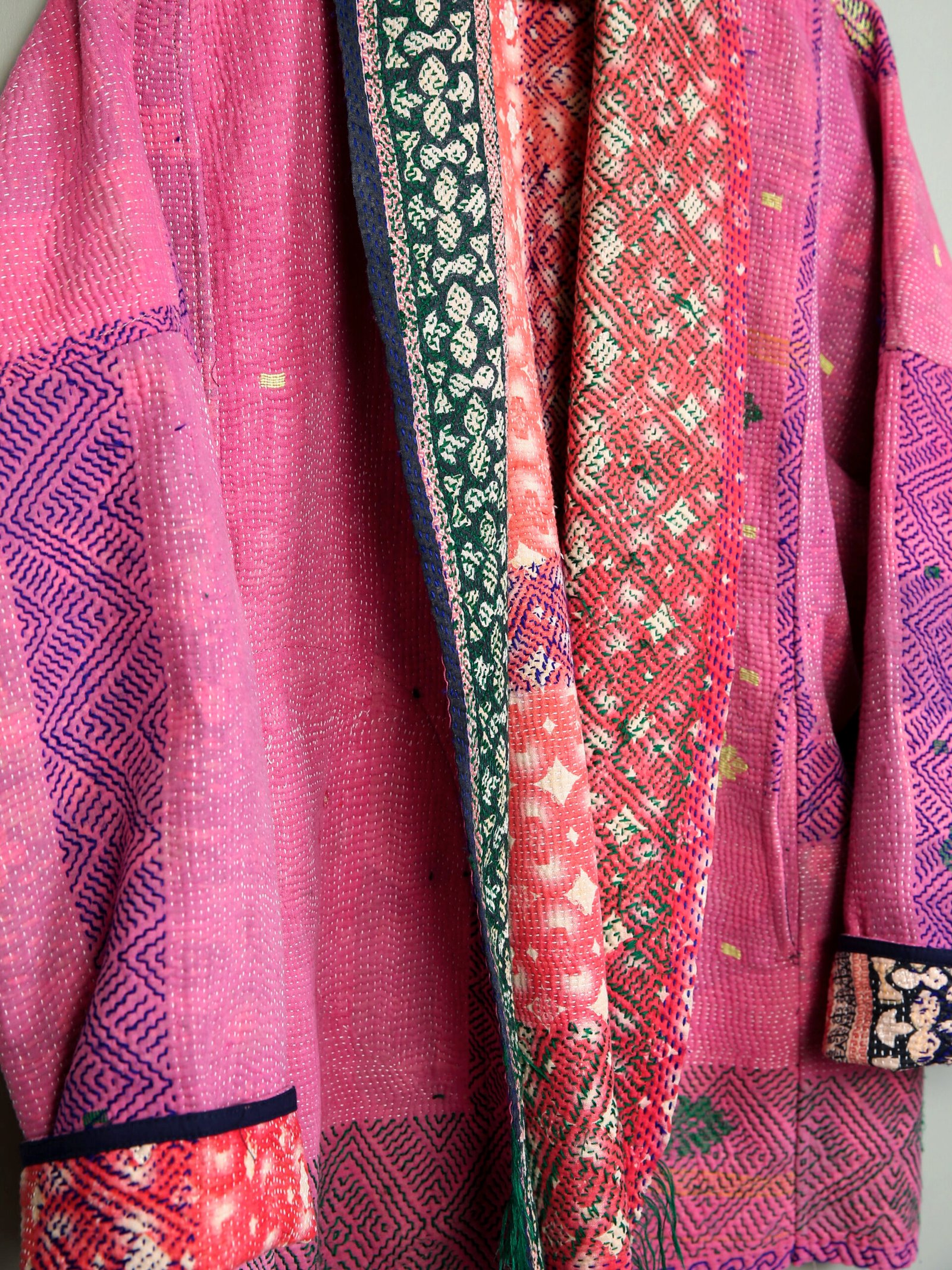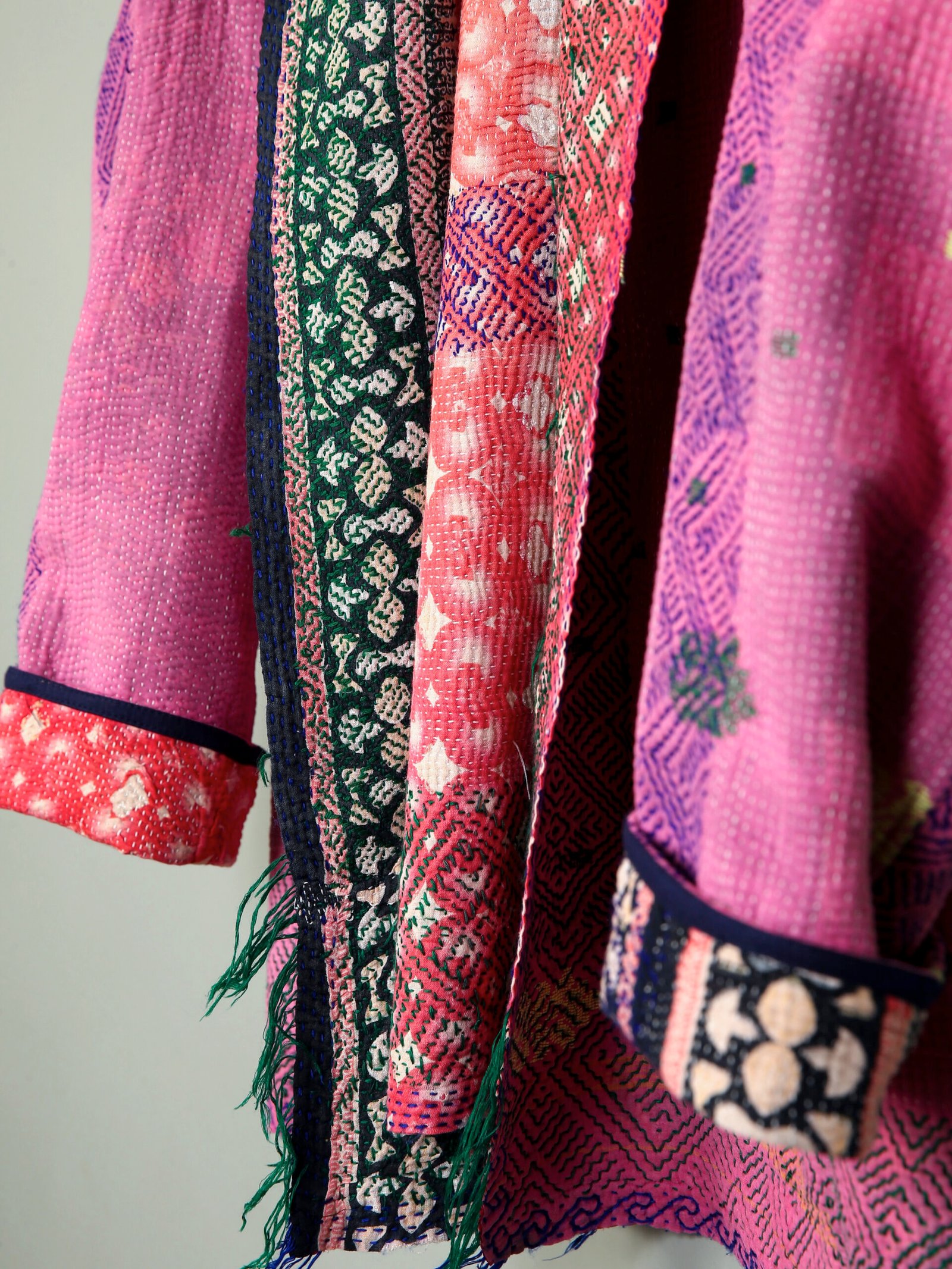 Les vestes de notre collection sont toutes des pièces unique créées à partir de tissus anciens appelés kanthas qui portent les empreintes du temps et des mains qui les ont façonné. De fait elle peuvent présenter quelques irrégularités sans pour autant en altérer la solidité. Chez Kahani Paris, nous considérons que ces irrégularités font l’âme et la beauté de nos produits.