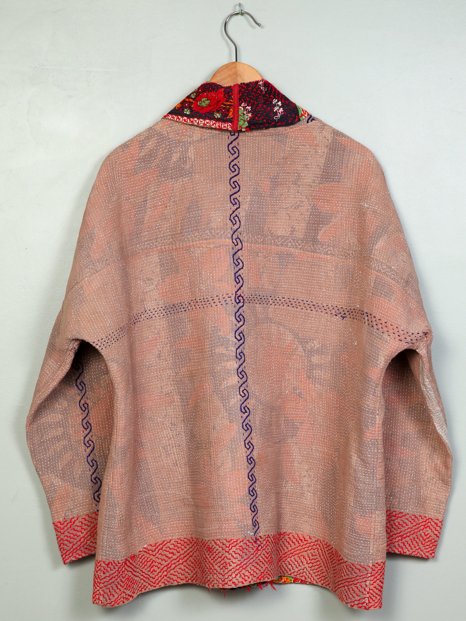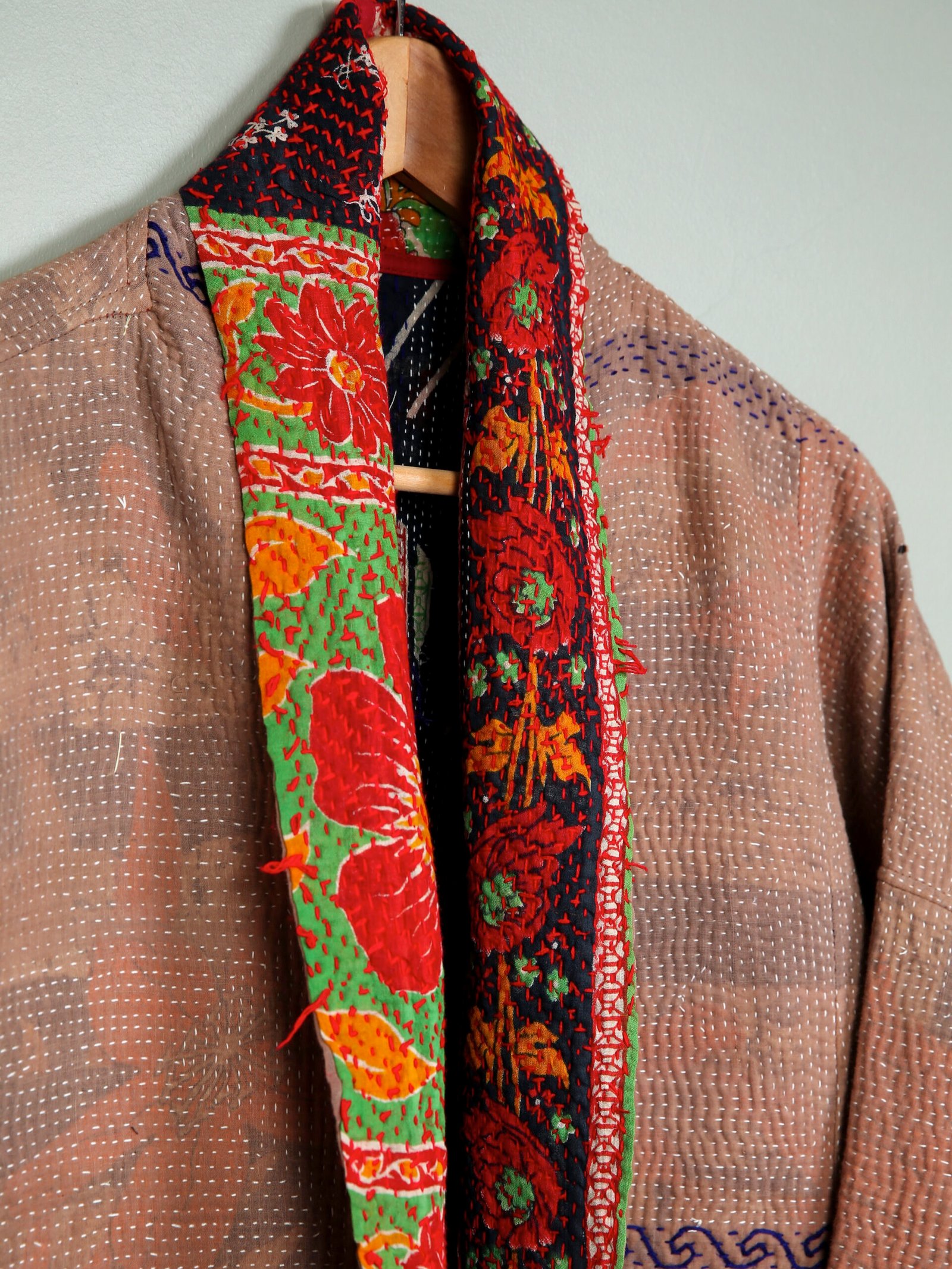 Les vestes de notre collection sont toutes des pièces unique créées à partir de tissus anciens appelés kanthas qui portent les empreintes du temps et des mains qui les ont façonné. De fait elle peuvent présenter quelques irrégularités sans pour autant en altérer la solidité. Chez Kahani Paris, nous considérons que ces irrégularités font l’âme et la beauté de nos produits.