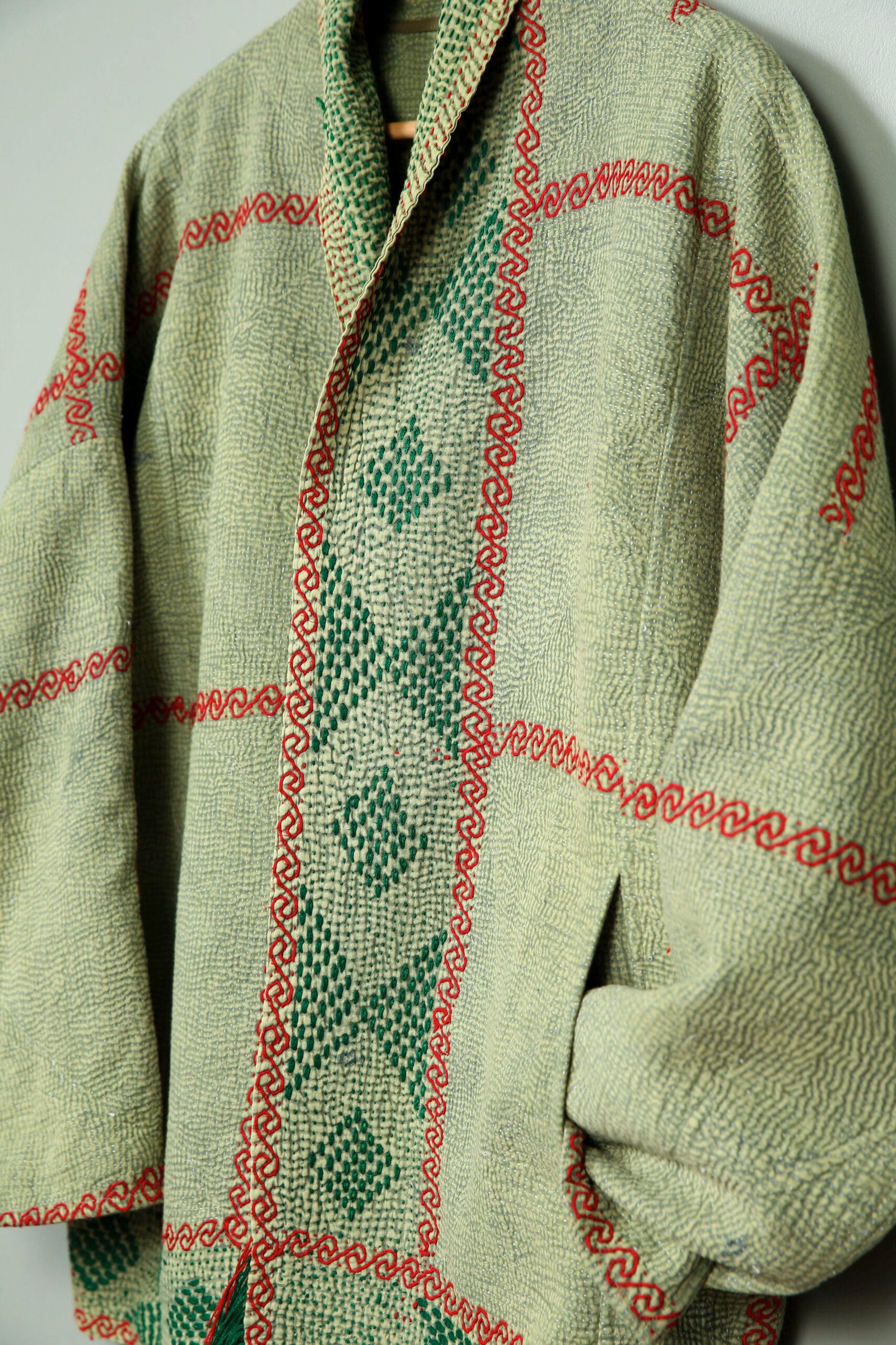Les vestes de notre collection sont toutes des pièces unique créées à partir de tissus anciens appelés kanthas qui portent les empreintes du temps et des mains qui les ont façonné. De fait elle peuvent présenter quelques irrégularités sans pour autant en altérer la solidité. Chez Kahani Paris, nous considérons que ces irrégularités font l’âme et la beauté de nos produits.