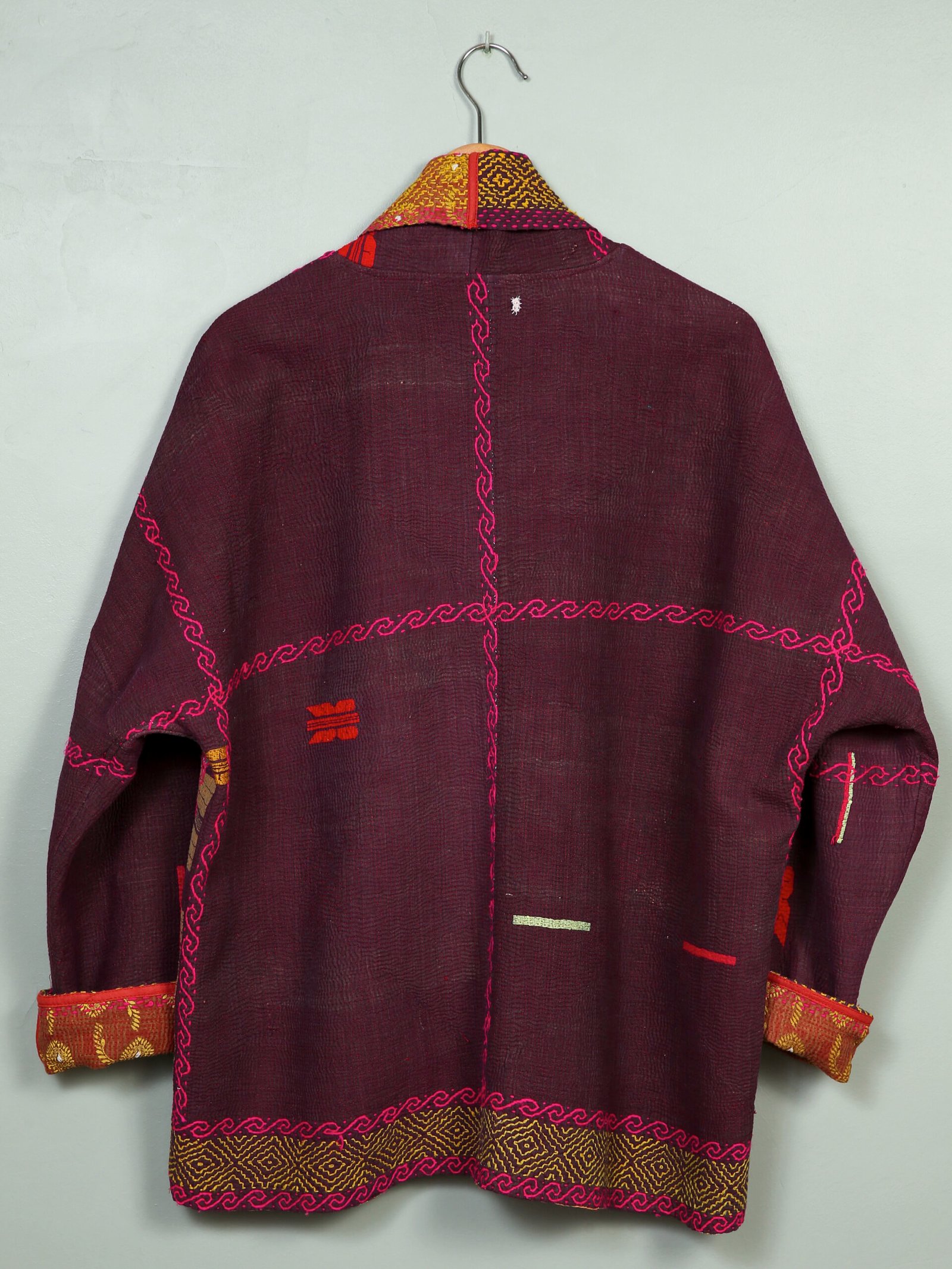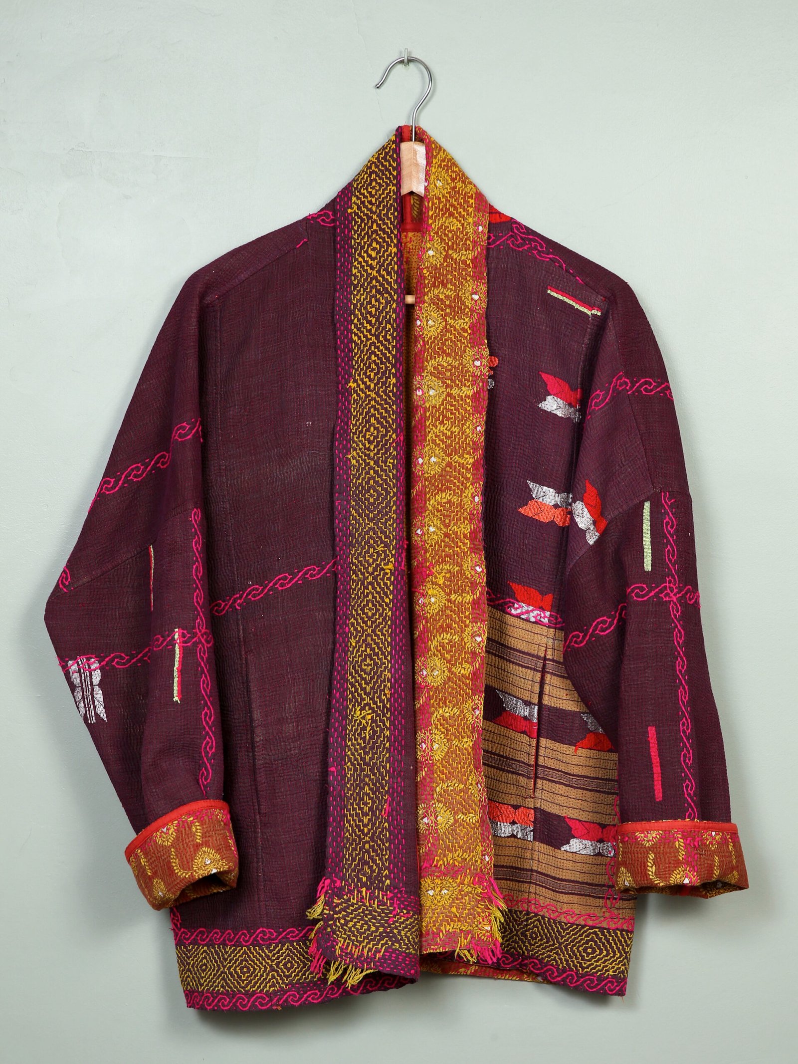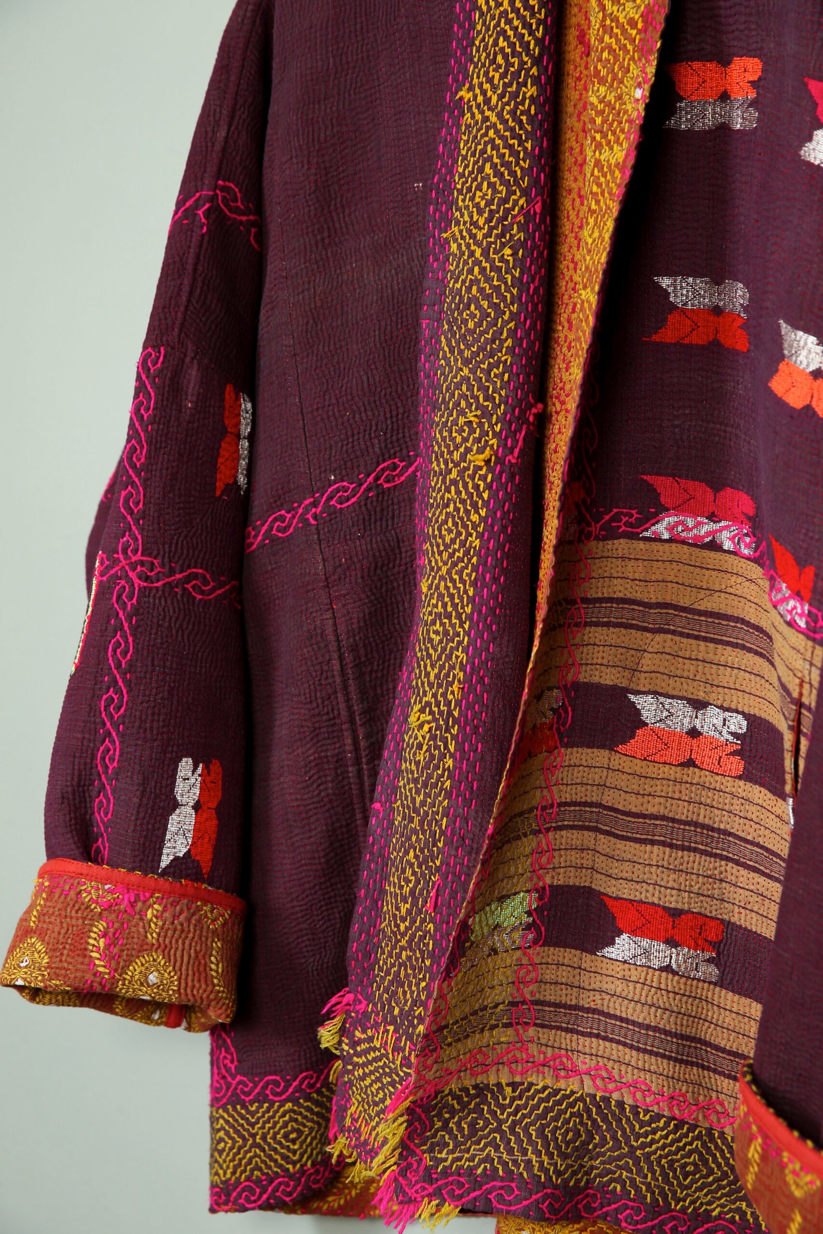 Cette pièce est confectionnée à partir d’un kantha ancien. Elle peut présenter de légères irrégularités, traces d’usure ou variations de couleur, caractéristiques des textiles anciens cousus à la main. Ces marques sont volontairement conservées et font partie intégrante de l’âme et de l’unicité du produit.