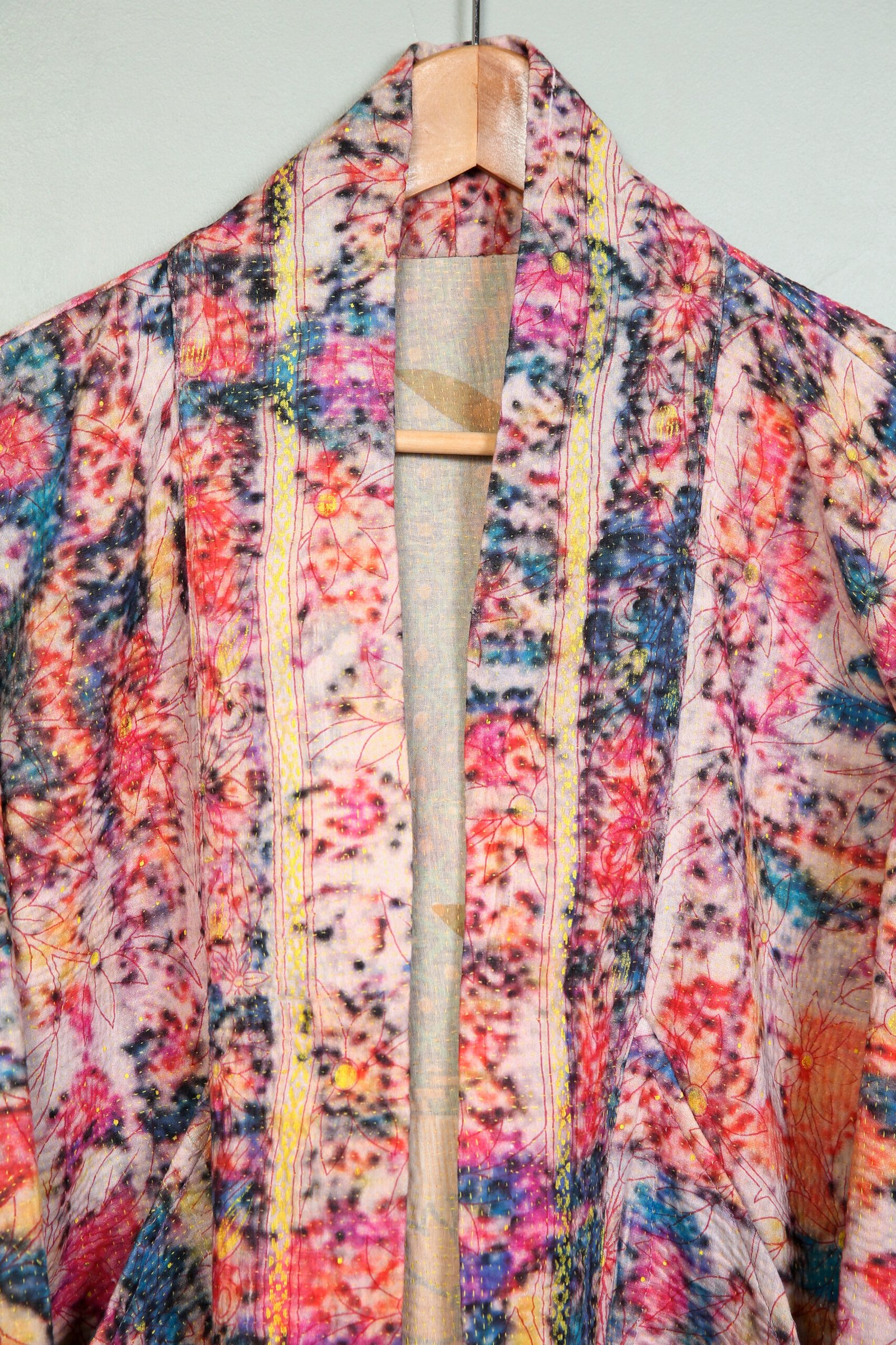 Les vestes de notre collection sont toutes des pièces unique créées à partir de tissus anciens appelés kanthas qui portent les empreintes du temps et des mains qui les ont façonné. De fait elle peuvent présenter quelques irrégularités sans pour autant en altérer la solidité. Chez Kahani Paris, nous considérons que ces irrégularités font l’âme et la beauté de nos produits.